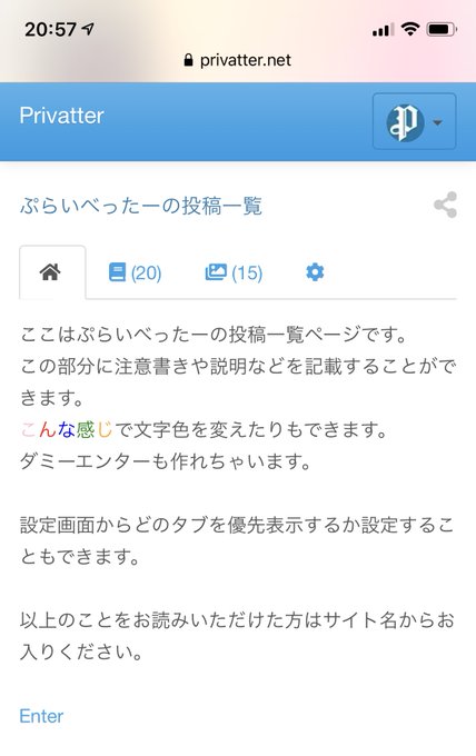 ぷらいべったー あなたの投稿一覧を開いたとき 文章 画像タブのどちらを先に表示させられるか設定できるようになりました あなたの投稿一覧ページの タブから設定できます 何も設定しないデフォルトの状態では投稿数が多い方が表示されるようになって