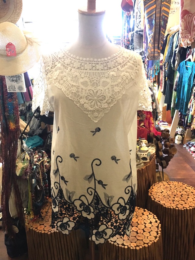 半袖ブラウス 半袖レース半袖 シャツ Tシャツ ホワイト アジアン雑貨no 10 アジアン雑貨 Asian Mrk