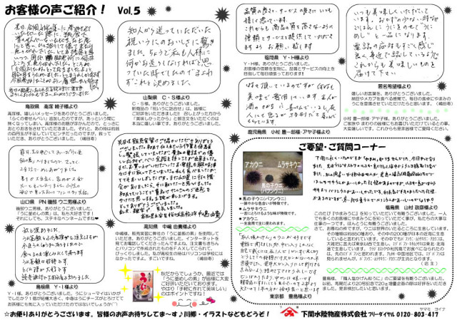 お客様の声1000通突破記念歴代お客様の声まとめふりかえり特集 その1 うにのお取り寄せ 通販サイト うにのやまみ
