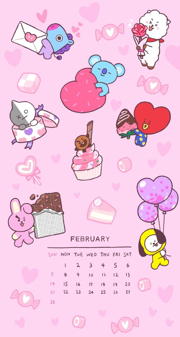 Bt21 February Will Be Sweet With Bt21 Bt21 February Calendar Wallpaper