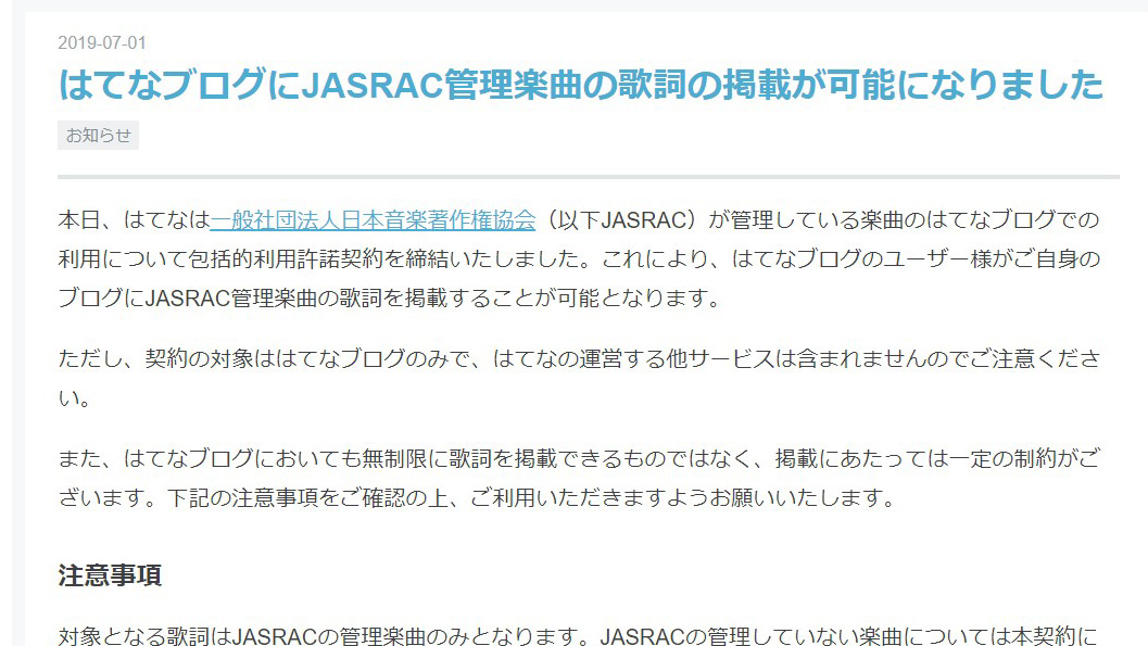 はてな Jasracと契約 はてなブログへの歌詞掲載が可能に Itmedia News